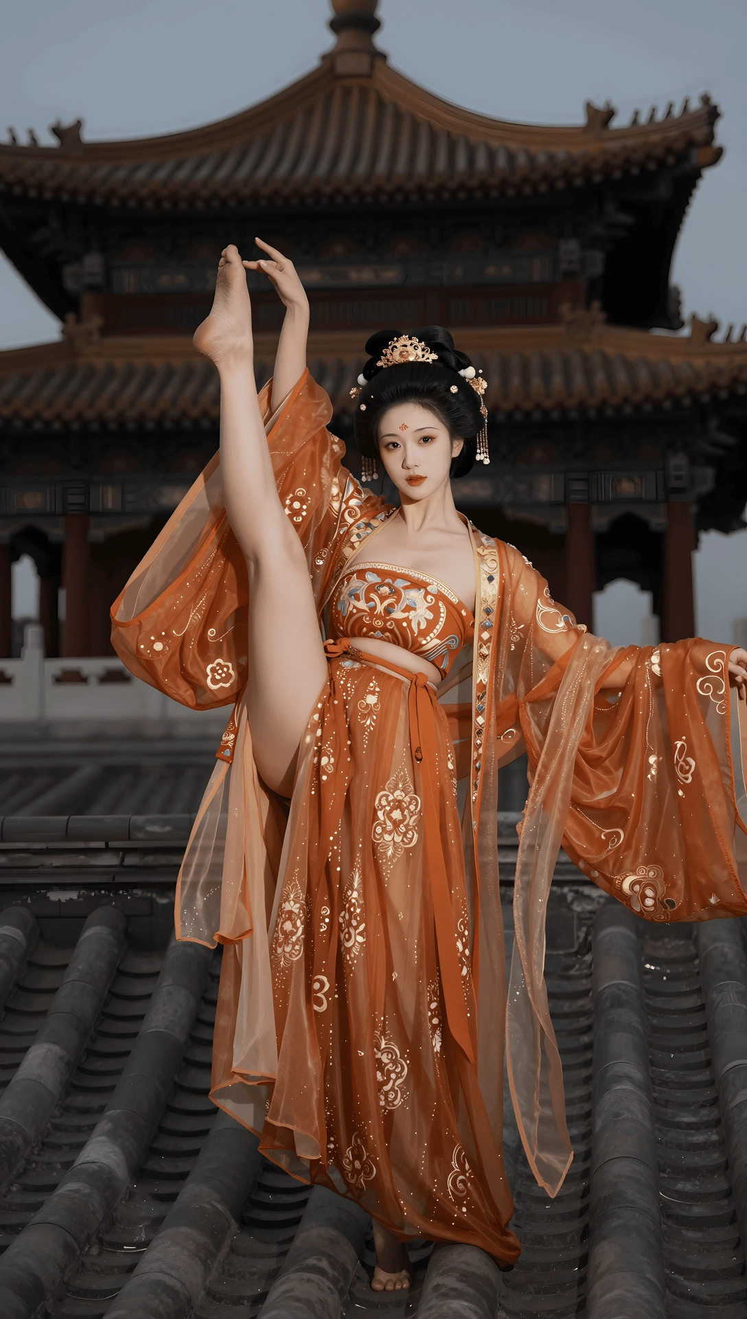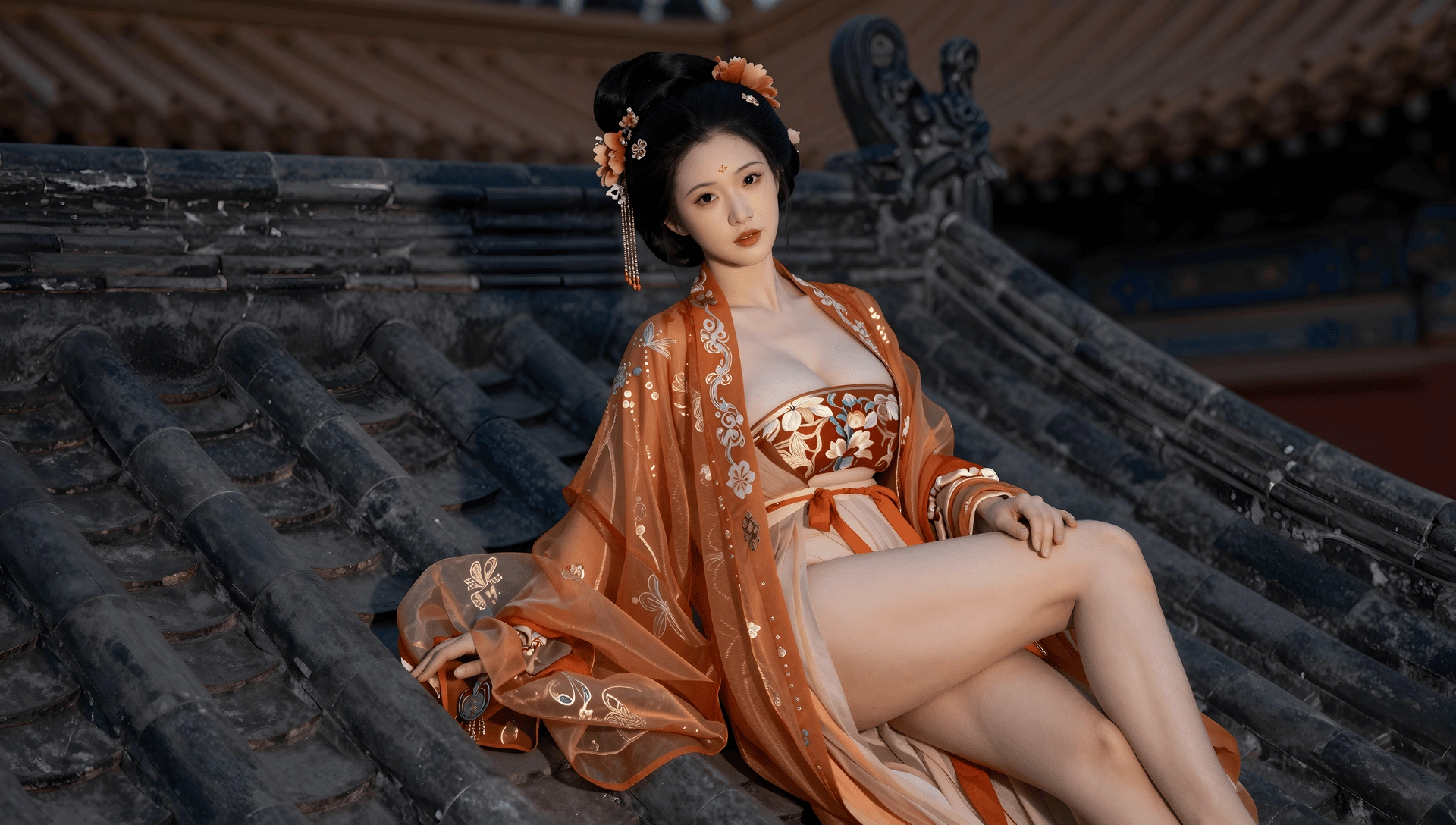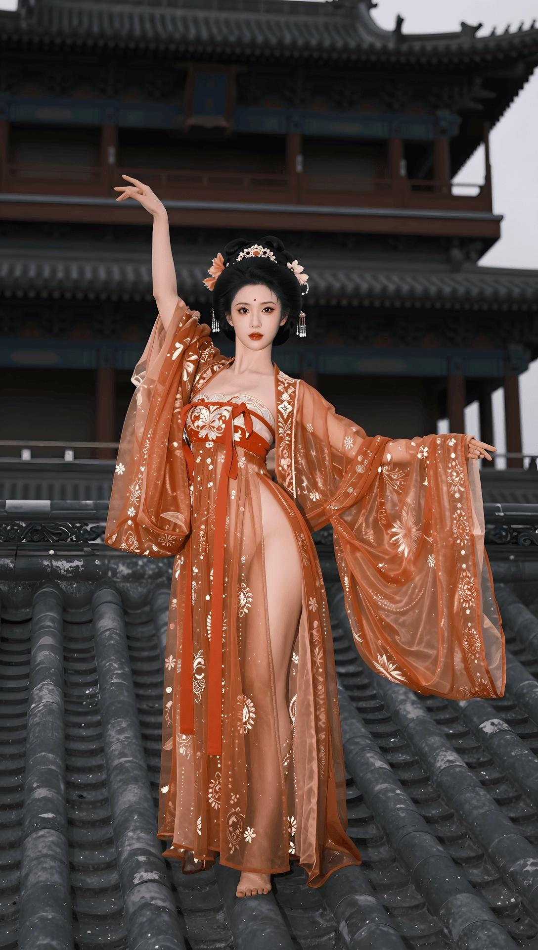 第一,这个系列不像是AI直接生成的那种图,皮肤质感和建筑风景比较真实,我估计是拍摄后用AI修图修得比较艺术,磨皮和滤镜效果比较深。否则这个AI技术也太高了。